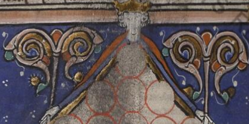 It appears at fol. CCVIIr of Vat.lat.2671, a codex of law which has just been digitized at the Vatican Library. The book is the Summa super titulis decretalium of Goffred de Trano, compiled between 1241 and 1243 and this is a copy from just a generation later, scribed 1270/80, perhaps in Puglia, Italy. The image is part of an arbor, a scheme of forbidden in-law unions.